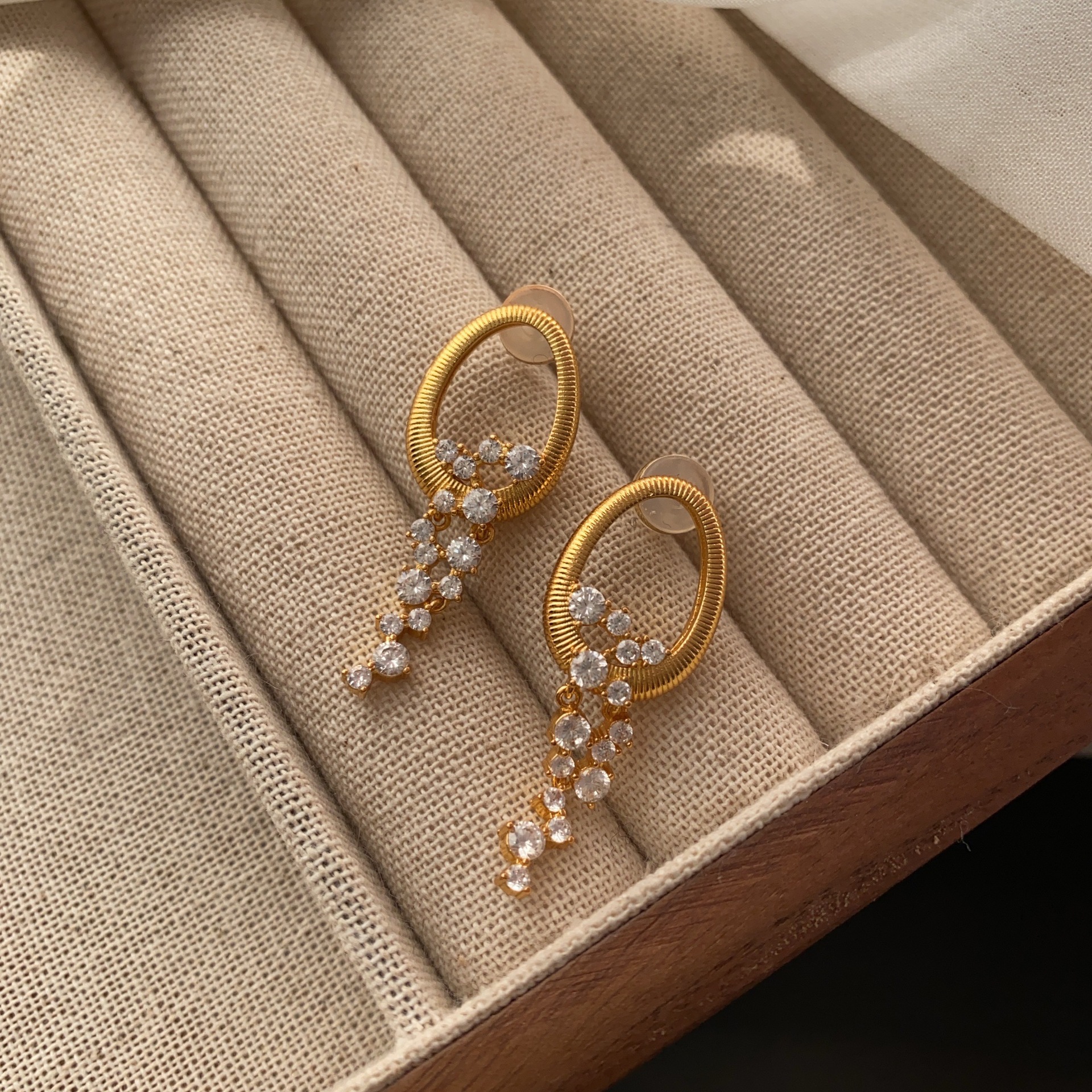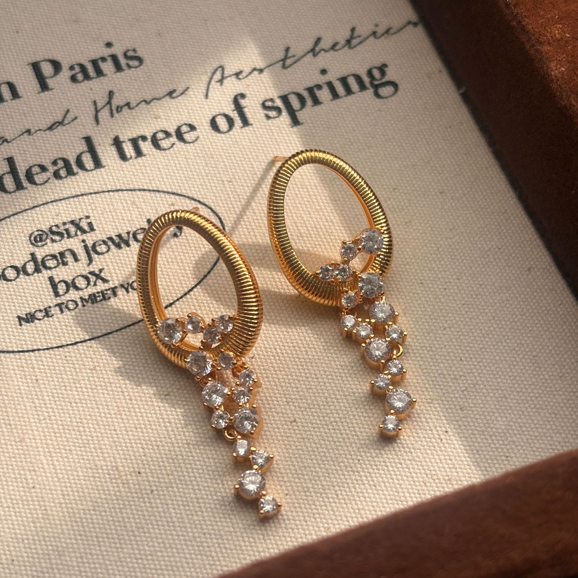 Brushed tassel earrings Micro-inlaid zircon tassel earrings