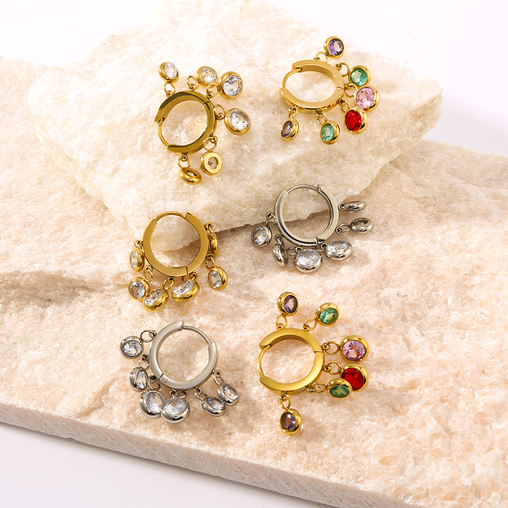 Colored zircon tassel earrings multi-pendant stainless steel earrings