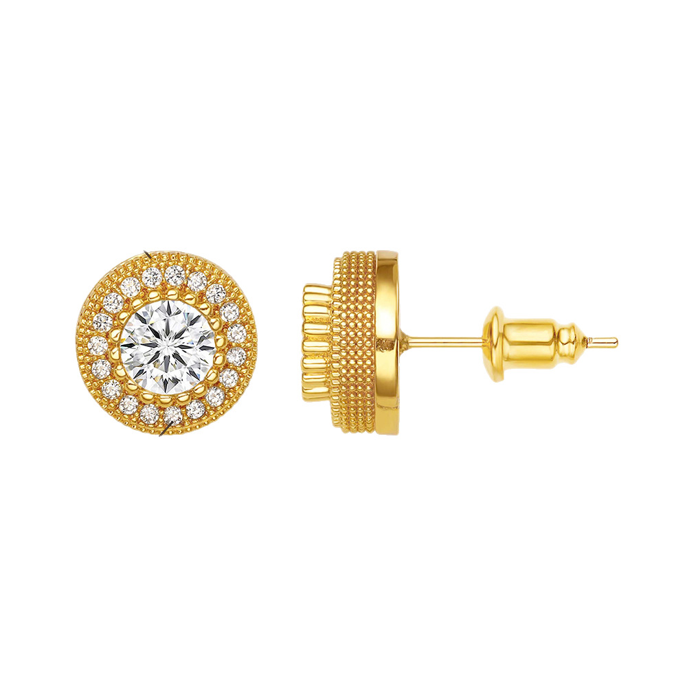 Copper inlaid colorful zircon round earrings trendy hip-hop earrings