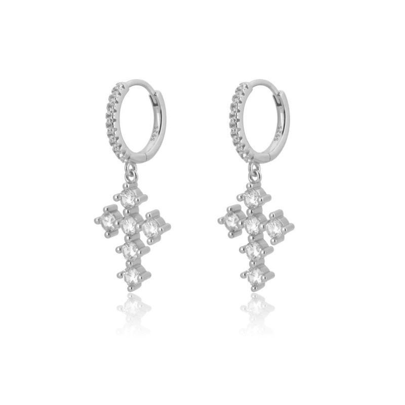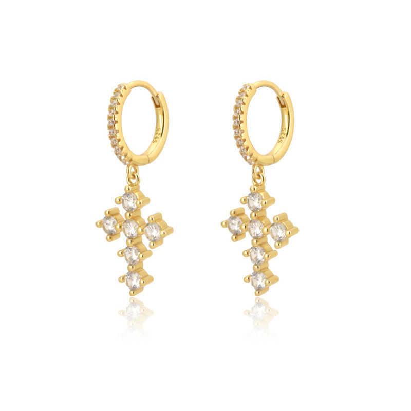 Dainty Cross Huggie Hoop Earrings for Women, 925 Sterling Silver/Gold Plated CZ Paved Cross Dangle Earrings, Religious Jewelry for Gifts