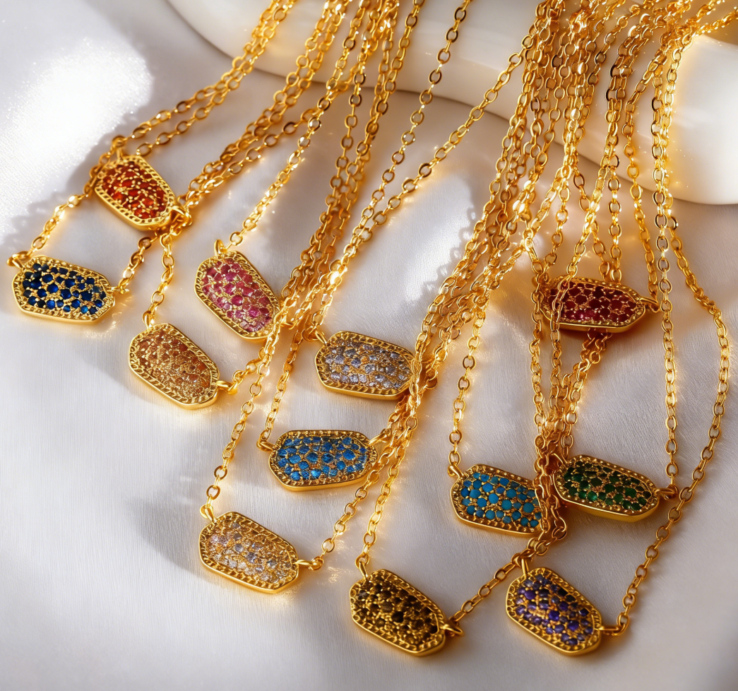 成为第一个“Luxury Gold Plated Paved CZ Oval Charm Necklace, Multi-Color Gemstone Stainless Steel Chain, High Quality Wholesale Jewelry for Boutiques” 的评价者