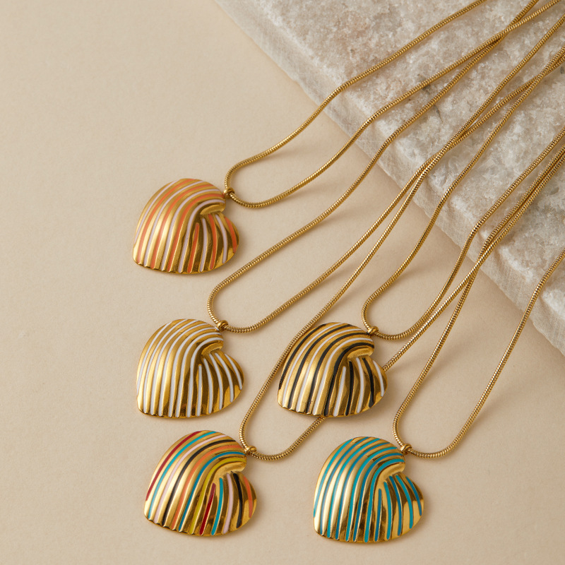 New French retro stainless steel heart stripe clavicle chain ladies enamel oil drop necklace