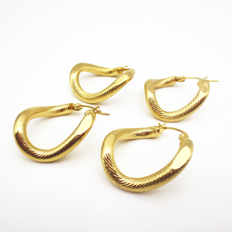 Stainless Steel Twisted U-Shaped Hoop Earrings for Women, Gold Plated Vintage Hoop Earrings for Girls Everyday Wear Hypoallergenic Earrings