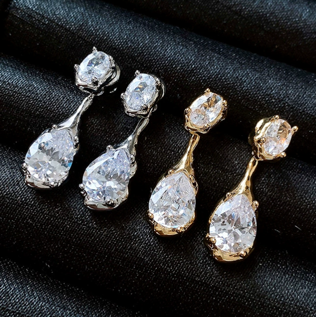 Super flash zircon teardrop earrings hypoallergenic 925 silver needle long earrings