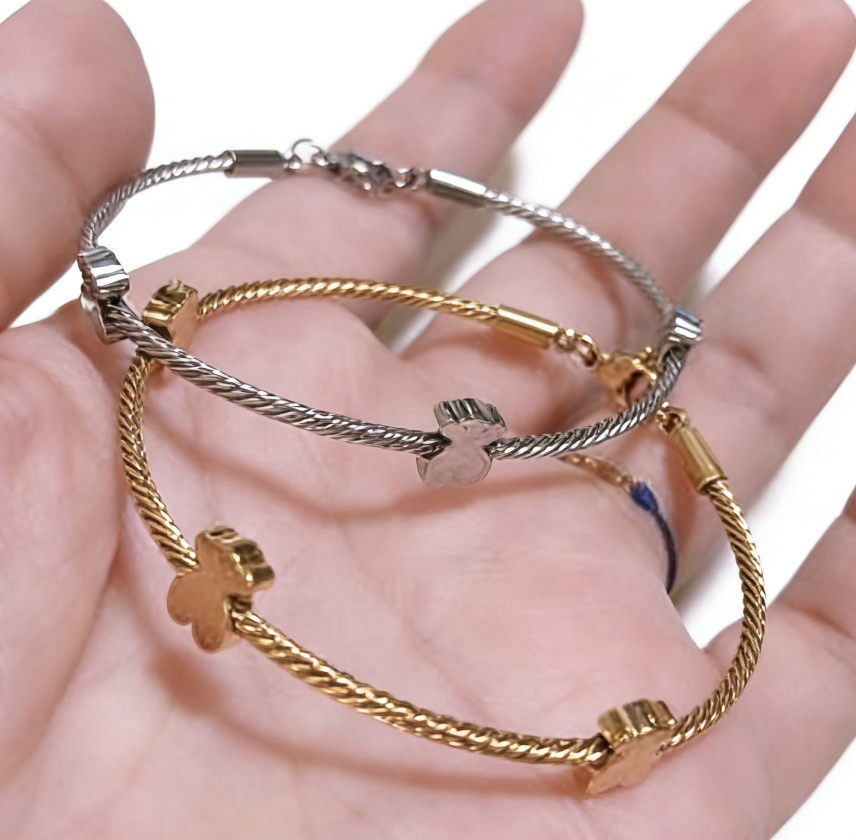 Wholesale Stainless Steel Twisted Cable Cuff Bangles, Gold Silver X-Shaped Zircon Cuff Bracelets, Adjustable Fashion Jewelry for Resale, Bulk Buy for Retailers