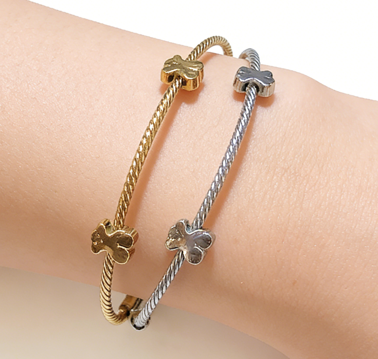 成为第一个“Teddy Bear Charm Stainless Steel Bangle Bracelet | 18K Gold Plated Tarnish Free Cuff for Women | Cute Animal Jewelry Gift” 的评价者