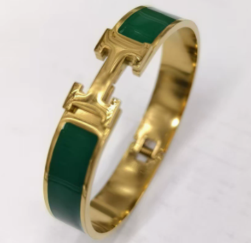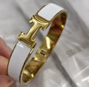 成为第一个“Wholesale 12mm Wide Hermes Inspired H Logo Bangle, Gold Plated White Enamel H Bracelet(multiple colors available), Tarnish Free Stainless Steel Jewelry for Bulk Purchase” 的评价者