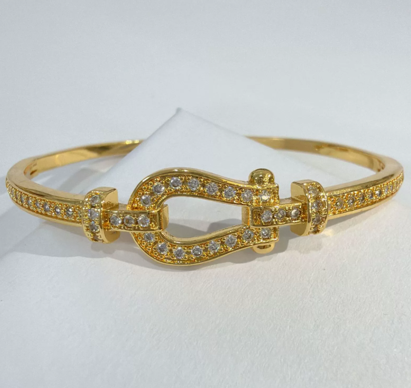 成为第一个“Wholesale 18K Gold Plated Horsebit Bangle, Full Paved CZ Stainless Steel Gold Bracelet, Tarnish Free Fashion Jewelry for Bulk Purchase” 的评价者