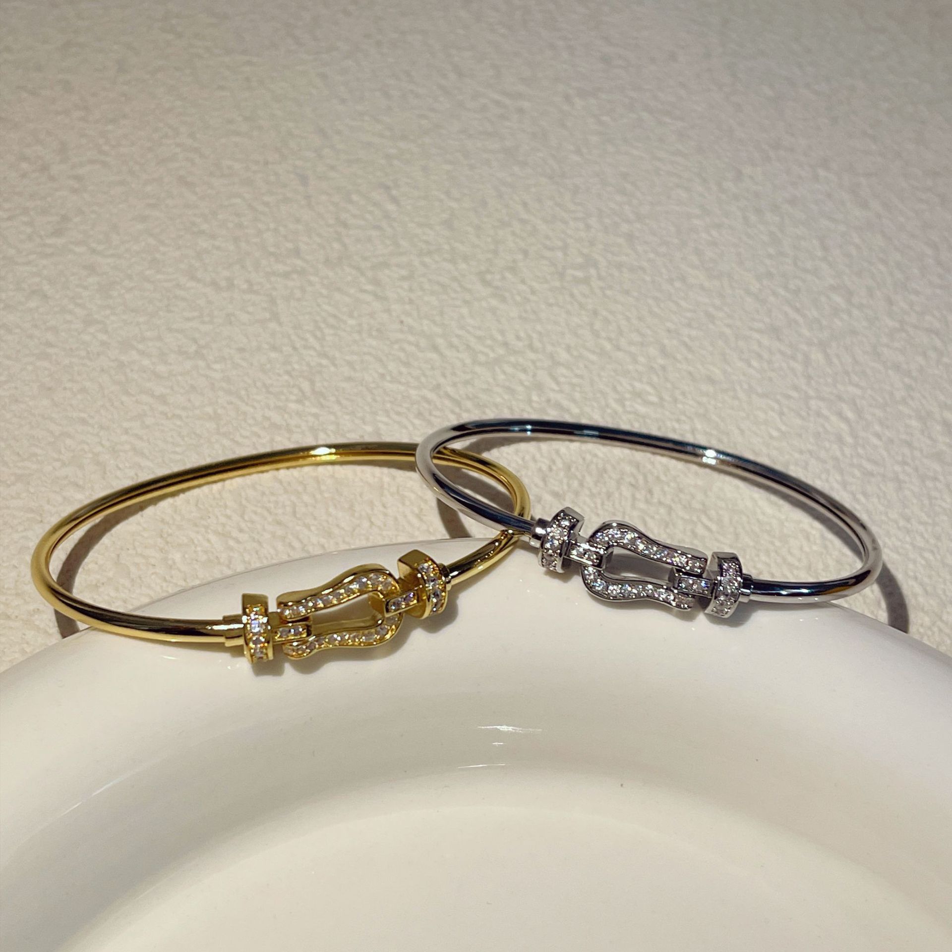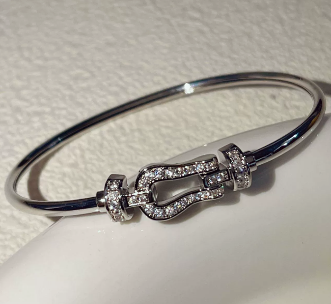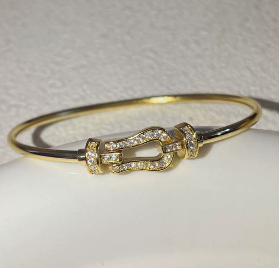 Wholesale 18K Gold Plated Horsebit Bangle,Charm Paved CZ Gold & Silver Stainless Steel Bracelet,Tarnish Free Fashion Jewelry for Bulk Purchase