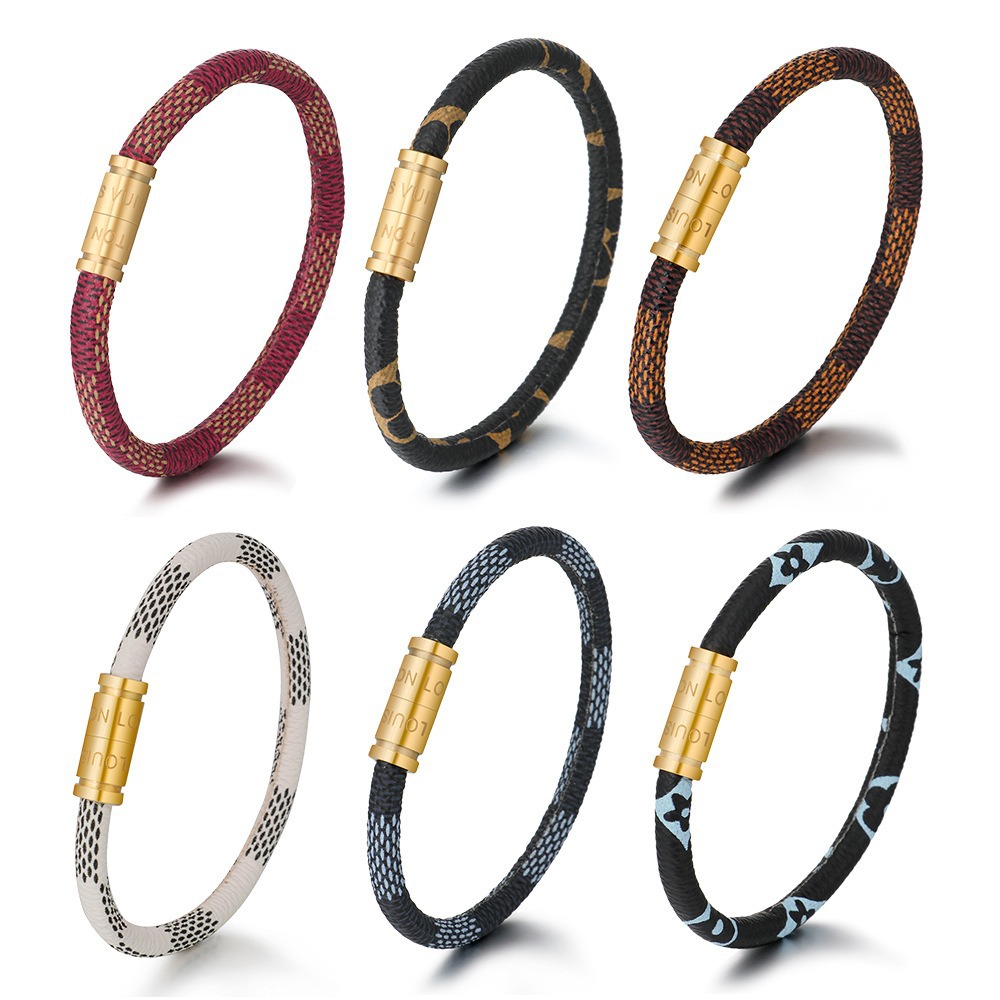 Wholesale Designer Inspired Leather Bracelets for Women Men, Magnetic Clasp Monogram Pattern Bangle, Bulk Fashion Jewelry for Resale, Bulk Buy for Retailers